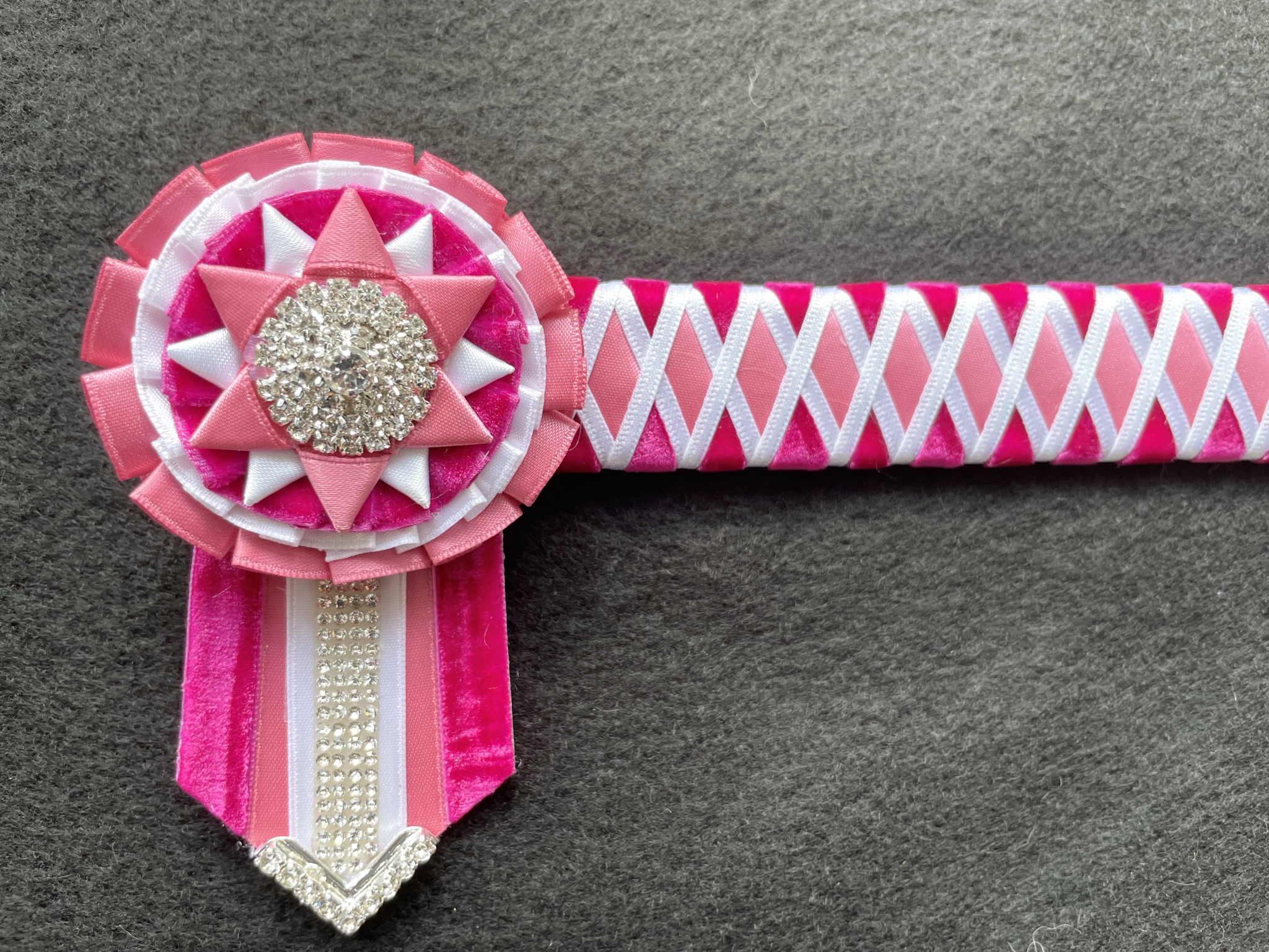 Made with pink satin, white satin and hot pink velvet.